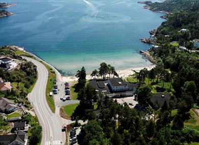 Allmenningsstrand beliggende ved Strand Hotel Fevik. Populær badestrand, lett tilgjengelig fra rv 420 og tett opp til bussholdeplass.