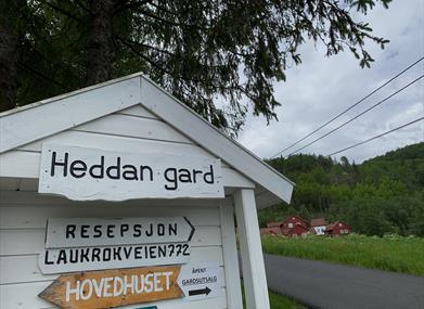Heddan Gjestegard ligger 80 kilometer fra Kristiansand og Stavanger/Setesdal og Preikestolen. Skiltet fra Rv 42 og Rv 43.