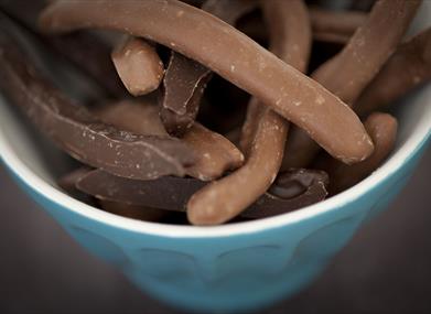 I Heimdal Chokolades utsalg i Det rosa huset kan du se hvordan ekte hjemmelaget konfekt blir til. Dette er landets eldste produsent av hjemmelaget konfekt og sjokolade.