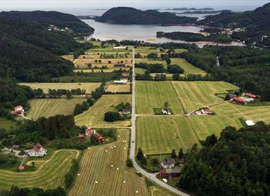 Til slutt kommer man til turens høydepunkt, utsiktspunktet Hommefløyen/fløyheia. Her ser man vidt utover Hommesletta med den snorrette veistrekningen ut mot Egeland. Man ser Snig og utenfor der igjen Svinør og Vårøy.