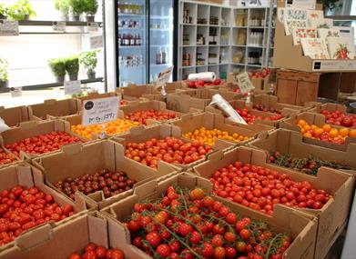 I gartneriutsalget selges flotte grønnsaker, urter, dressinger, oliven m.m. Her får du blant annet over 25 forskjellige tomatsorter. Tomatene er populære, og barna spiser dette som lørdagsgodt i helgene. Gartneriet har også et stort utvalg innen alle grønnsaker som kan dyrkes i nordisk klima, som blant annet lilla blomkål, grønn blomkål, orange blomkål og den vanlige hvite blomkålen.