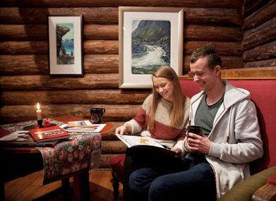 Alle dager vi har åpent serverer vi hjemmebakt kringle og rundstykker, kraftig kjøttsuppe, kaffe, te, sjokoladedrikk, mineralvann og is. Vi har også glutenfritt og vegetar alternativ. Alt er hjemmelagd og kortreist mat.