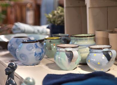 Vi har godt utvalg av kunsthåndverk og grafikk fra dyktige kunstnere. Hele sortimentet av Hillestad-smykkene er utstilt og til salgs her. I Kramløa i underetasjen fører vi blant annet interiørprodukter fra Broste Copenhagen og tekstil fra Ekelund.
