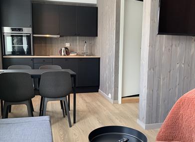 Hovden Fjellstoge har vinteren 2020 åpnet opp en ny fløy med ti studioleiligheter. Leilighetene består av ett rom med dobbeltseng og sovesofa, spisekrok med velutstyrt kjøkkenkrok. Hver leilighet har også baderom med dusj og wc.