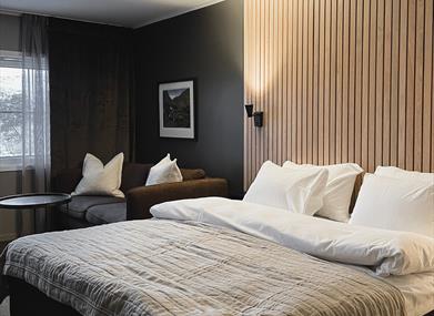 Hotellet tilbyr komfortable dobbeltrom, familierom og suiter, samt leiligheter med plass til 6 eller 8 personer. Alle rom og leiligheter er innbydende innredet og gir en lun og behagelig atmosfære etter en dag ute i naturen. I hotellets restaurant kan du nyte alt fra smakfulle retter, mens den koselige lobbybaren inviterer til hyggelige kvelder med gode drikker og avslappet stemning.