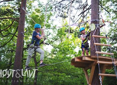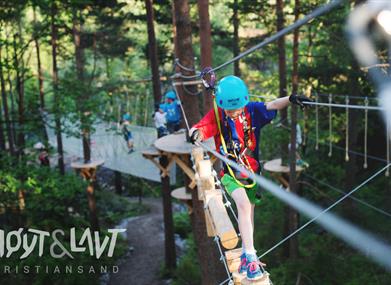 Klatreparken Høyt & Lavt Kristiansand ligger kun en 10-minutters busstur fra Kristiansand sentrum. Dette området, som tidligere var en skytebane, har blitt forvandlet til et folkekjært rekreasjonsområde med et bredt spekter av aktiviteter. Her kan dere boltre dere i tretoppene, i skogen og de andre områdene som ligger idyllisk til ved vannet Grotjønn.