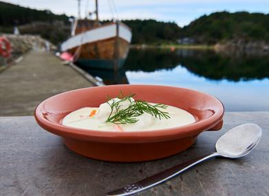 Like i sjøkanten ved Båly havn finner du butikken vår – Jentan på Båly. Her har vi vårt delikatesse kjøkken med de ferskeste råvarene og de beste hjemmelagde produktene. Butikken er sommeråpen og vi kan by på god stemning med deilige retter, små og store delikatesser fra hav og land og ikke minst en knall god softis med hjemmelaga strøssel.