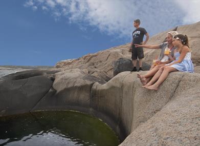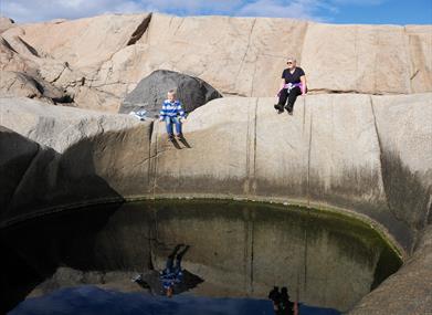 OBS: det kan være svært glatte berg og stort farenivå ved sterk vind i området rundt Jettegrytene