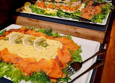 Vår bugnende julebordsbuffet med alle julens varme og kalde fristelser.