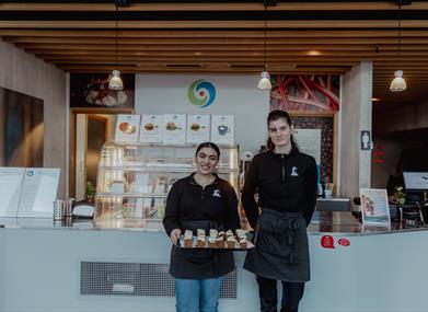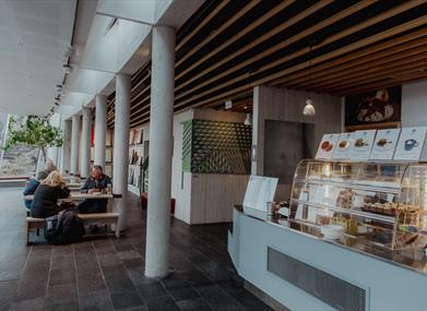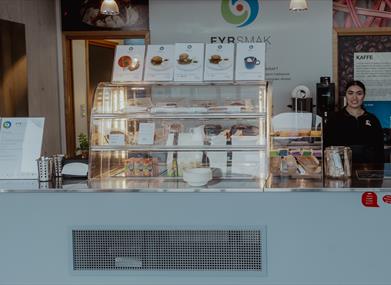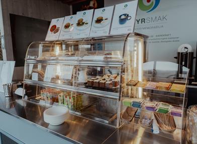 I cafeen serverer vi økologiske egen produserte produkter. Kos deg med en nydelig fyrvaffel, muffins med tang og sitron eller en varm og god suppe.