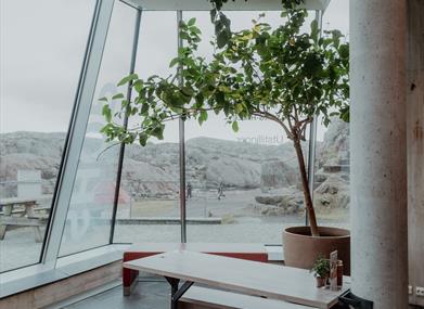 Cafeen er en perfekt plass å få varmne i seg etter turen opp til toppen i fyret hvor det som oftest blåser litt, eller komme inn i skyggen fra sola på en varm sommerdag.