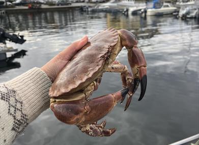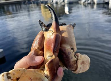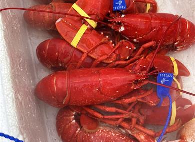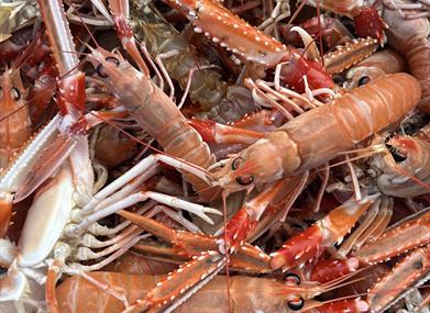 Kaisalg i Risør av ferske skalldyr, direkte fra fiskebåt.