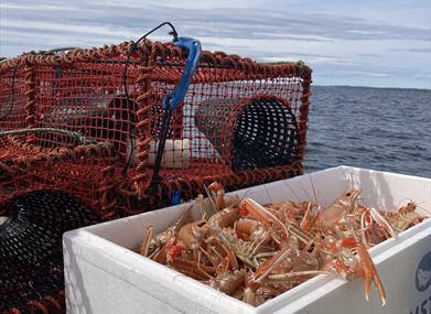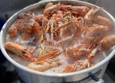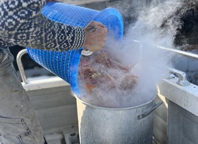 Fiskebåten AG-16-R Jenny M, fisker teinefangede sjøkreps som kokes rett i båten når vi kommer i land.