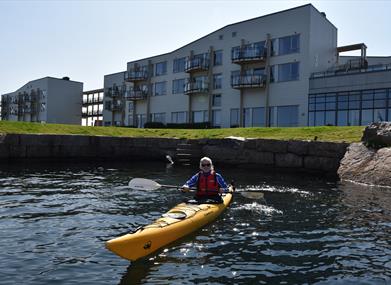 Lindesnes Havhotell har både enkle kajakker og duo kajakker. Om dere er en gruppe holder de gjerne et kurs for dere, eller fungerer som guide i de flotte omgivelsene her ute på Sydspissen.