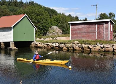 Dersom sjøen er mer urolig anbefales å padle gjennom den flotte Spangereid-kanalen og videre innover fjorden.