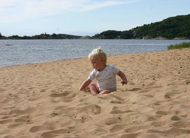Stranden ligger med flott utsikt utover skjærgården, og turnettverket i Furulunden tar deg til stranda som ligger "ytterst" i området. Det er offentlig toalett like ved stranda.