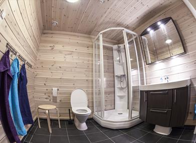 Dusj og toalett.