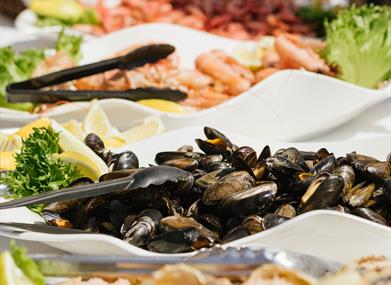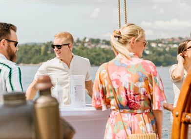 Det serveres skalldyrbord*, og maten nytes ved ståbord, det er begrenset med sitteplasser om bord, og alle gjester må kunne gå over landgangen til skipet. Det er bar om bord, der du kan kjøpe drikke.