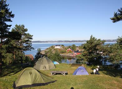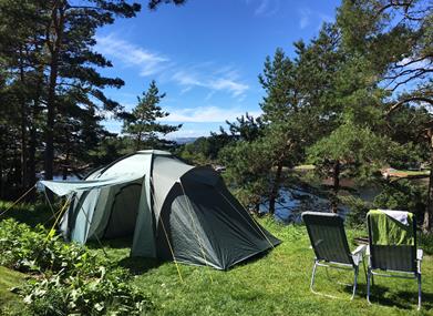 Overnattingsmuligheter med telt, campingvogn eller bobil.