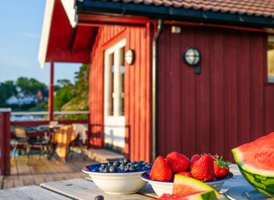 En sjøbu, og 3 hytter med fantastisk beliggenhet og utsikt over sjøen. Hyttene har fra 4 – 8 sengeplasser. Hyttene har alle eget bad med dusj og toalett, samt stue og fullt utstyrt kjøkken.