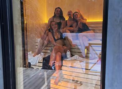 Badstue med plass til 6 personer mot ekstra kostnad.