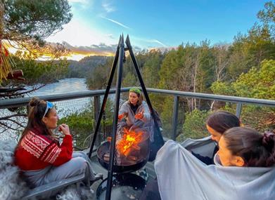 Alt smaker bedre i skog og mark, derfor har vi gjort klar bålpanne med kaffekjele, grillrist og stekepanne så du kan tilberede enkle, men smakfulle måltider.