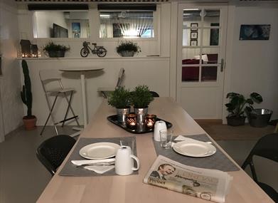– Gjestene får tilgang til vaskemaskin/tørketrommel, kjøleskap og en sittegruppe – hvor du kan stelle din egen frokost. Hvis du eller din reisegruppe ønsker frokosten inkludert – avtaler vi det nærmere.