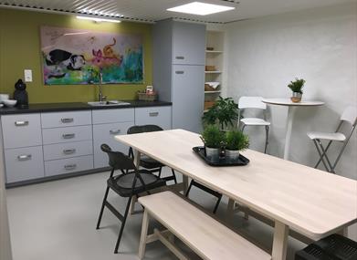 – Kjøkken med fullt dekketøy til 60 gjester.