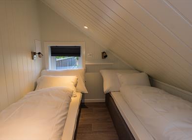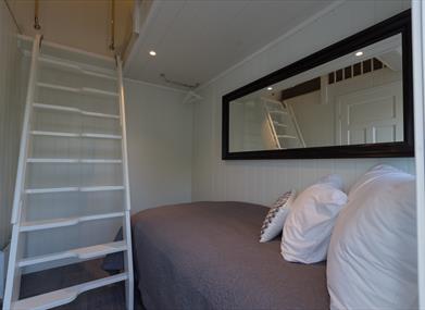 Rommene er av type «kabiner», med 1 sengeplass, dusj/toalett i første etg., og 2 sengeplasser på hems. Rom med 5 sengeplasser, har dobbeltseng og dusj/toalett i første etg., og 3 sengeplasser på hems.