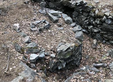 Krigsminne etter 2.verdskrig med skyttergraver og løpegraver.