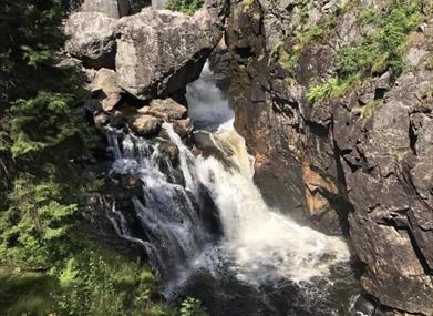 Kvåsfossen er en mektig opplevelse med et kraftig fossefall og laksesenteret