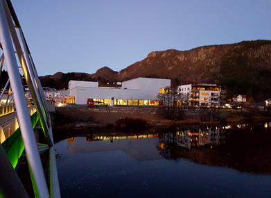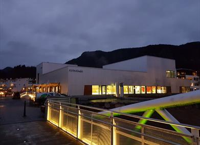Kvinabadet ligger i Kvinesdal sentrum, rett ved siden av elva.