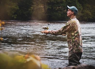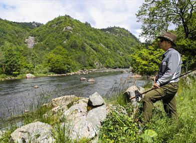 Her deler du elvebredden med både lokale sportsfiskere i alle aldre. Rett ovenfor Kvellandsfossen er det også en fiskeplass tilrettelagt for bevegelseshemmede.