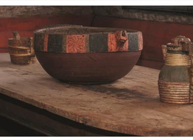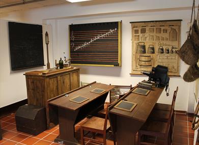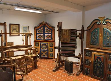 Utstillingen inkluderer en autentisk skolestue, historiske interiører, bruksgjenstander, håndverksutstyr, samt gjenstander fra skomakeryrket og tidlig telekommunikasjon.