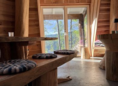 Lavvoen har 4 soverom,1 hems,kjøkken,vedovn,campingdusj, toalett og stor stue.