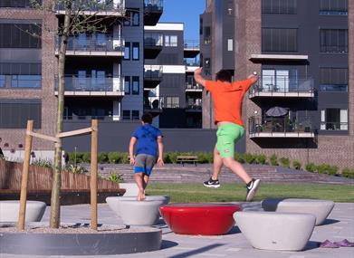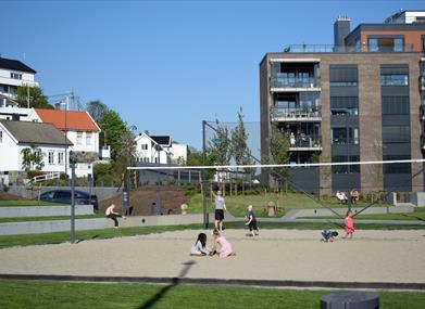 Barbu Park inneholder et bredt utvalg av aktiviteter; bruksplener, lekeplass, sandvolley, street basket, skate-/rulleområde, badebrygge med solterrasser, flytebrygge med stupetårn, samt rolige oppholdssoner med varierte sittemuligheter. Barbuelven, som går i kulvert gjennom området, er «løftet opp» på bakken med et 60 meter langt vannlekområde. Den eksisterende promenaden langs sjøkanten fra sentrum videreføres og avsluttes i parken.