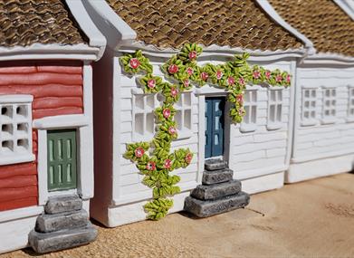 Produkt spekteret vårt består av alt fra store, vakre taklamper, vaser, fat og boller, figurer i alle fasonger, vakre og detaljrike miniatyr hus, smykkeskrin og lysestaker i alle mulige varianter. Vi har også en utstilling av våre tidligere prosjekter, som f.eks Kardemommeby byvåpenet som ble delt ut til alle 4 medlemmer av kongefamilien, da Kardemommeby ble åpnet i Dyreparken i 1991.