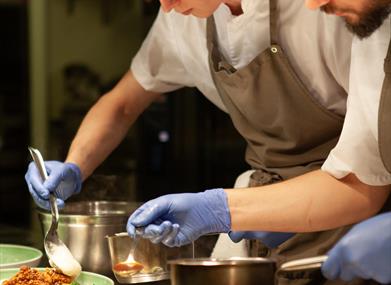 I deres nye mat-laboratorium kan du få en helt særegen opplevelse tett på kokkene, men dere må være en gruppe for å bestille her dersom dere ikke velger en tema-kveld. Her tilbys en måltidsopplevelse som fokuserer på nærhet til kokkene, til råvarene og til historiene som ligger bak hver rett. På Havhotellet elsker de å fortelle de gode historiene om maten som lages, og Laboratoriet er bygget spesielt for dette! Det er et åpent kjøkken, og et areal som skal romme både kunnskapsdeling, inspirasjon og lek med råvarer.