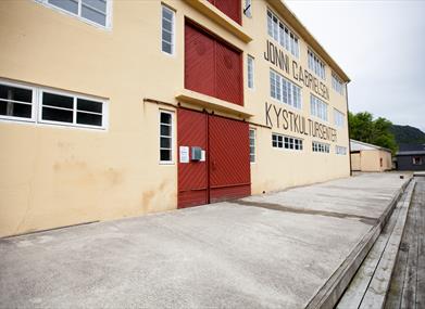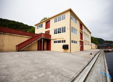 Kultursenter i den nedlagte fiskefabrikken i Ramslandsvågen, på vei mot Lindesnes fyr. Fabrikken er fra 1950, og hadde avdeling for fiskeforedling i 1. etg., hermetikkproduksjon i 2. etg. og produksjon av tønner i 3. etg.