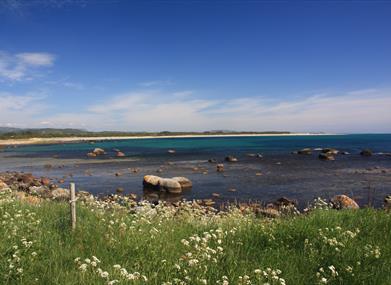 Lomsesanden er en av de populære strendene, her er det langgrunt og ypperlig for de små. Fra Lomsesanden kan du ta turen til Loshavn over Kirkeskaret eller gå mot Husebystranden rundt Einarsneset.