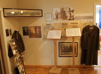 Utvandrere i krig. Hvor mange utvandrere deltok i de forskjellige krigene fra Borgerkrigen til Vietnamkrigen? Her brukes det også skriftlig informasjon og fotografier. I tillegg brukes diverse gjenstander som uniformer, våpen, tom hylser og andre typer militæreffekter.