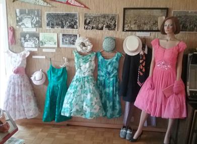 Utvandrere på fest. Hva foretok utvandreren seg når han var fri? Her er det brukt skriftlig informasjon i tillegg til fotografier fra arrangement i klubber, lag og foreninger Det samme gjelder fra 17. mai parader og lignende. I tillegg er det utstilt festklær av forskjellig slag.