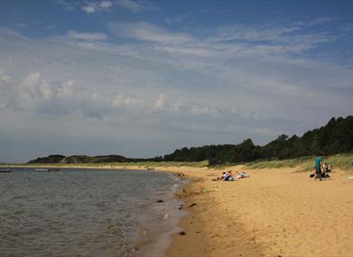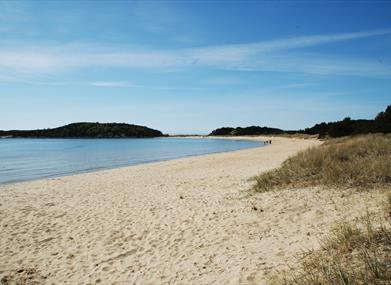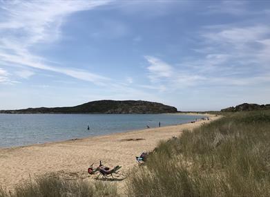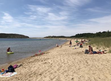 Stranden er tilrettelagt for besøkende med rasteplass og toalett.