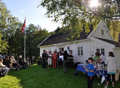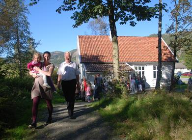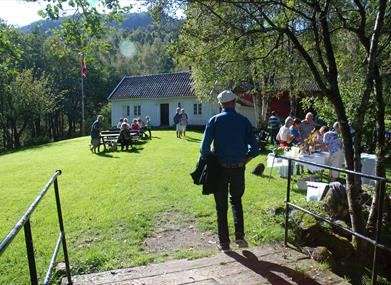 På den andre siden av fylkesveien finner du husmannsplassen" Haien", "Fjellhaug" og den historiske Eplehagen.
