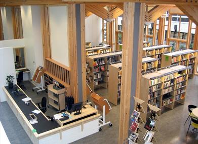 Lyngdal bibliotek ligger i et stort, lyst lokale og er blitt en hyggelig møteplass i byen. Biblioteket låner ut bøker, lydbøker, film, musikk, tidsskrifter, språkkurs og spill. Aviser kan leses i biblioteket.
