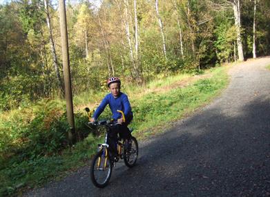 Etter å ha passert tunnelen langs kysten, ta til venstre ved skilt til Birkenlund, så videre forbi skolen evt. mot Nordbødalen.