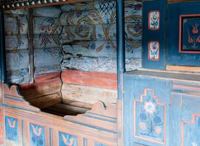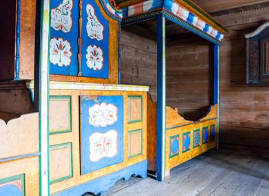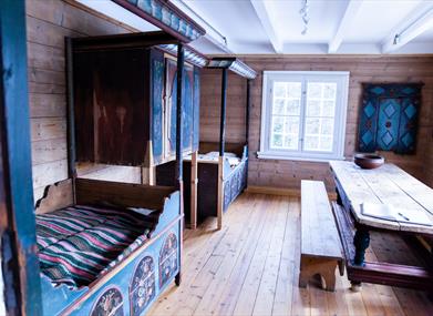 Hovedbygningen inneholder Vest-Agders eneste bevarte rosemalte bondestue, og er innredet med utstyr og gjenstander fra 1880-årene. Årestova er fra 1600-tallet.