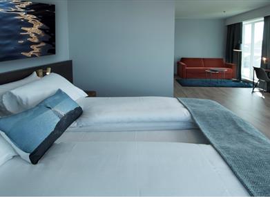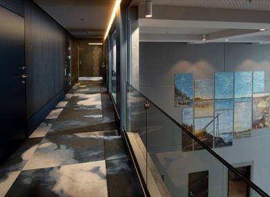 Hotellet har en harmonisk tilknytning til byens kulturhus, og sammen med en lokalpreget atmosfære med høy kvalitet i materialer og utførelser, er Mandal Hotel ulikt andre kjedehoteller.