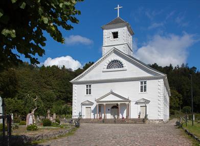 Dette er Norges største trekirke, innviet i 1821. Kirken har 1300 sitteplasser og er en langkirke i nyklassisk-/empirestil. Kirken er tegnet av arkitekt Jørgen G. Løser. Ved utgangsdøren henger bildet "Kristi Oppstandelse" malt av den kjente kunstneren Adolph Tidemand fra Mandal.