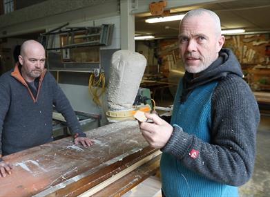 Vi holder til i Røssevika Industriområde – med et stort snekkerverksted, materialbank og egen sjarmerende resepsjon.